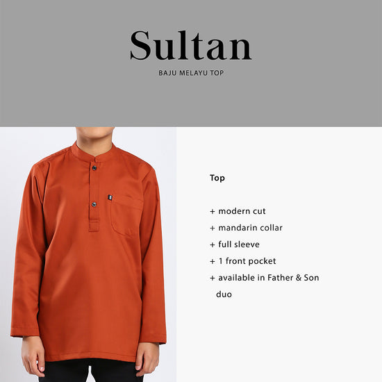 Sultan Baju Melayu Top Kids - BURNT ORANGE